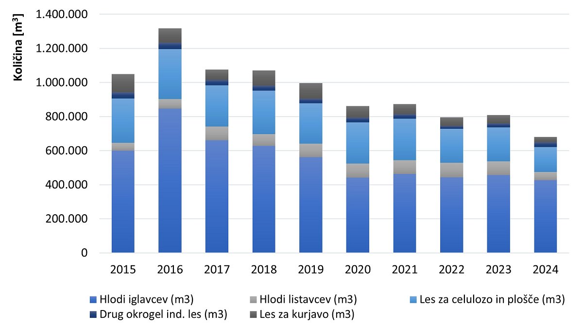 Statistični urad RS (SURS). 2025 Podatkovna zbirka Si-Stat: Odkup lesa, letno. Vir dostopen na: https://pxweb.stat.si/SiStatData/pxweb/sl/Data/-/1656402S.px/
