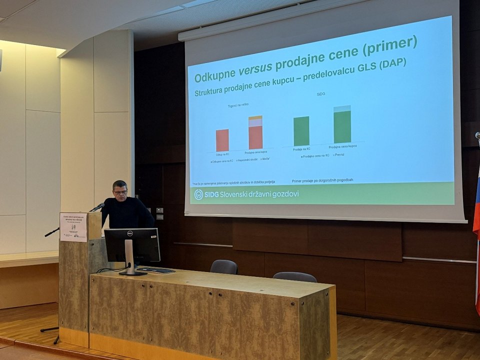 Po premoru sta sledili še dve predavanji. Mihael Koprivnikar, s Kmetijsko gozdarske zbornice Slovenije, je poudaril pomen transparentnosti trga okroglega lesa za zasebne lastnike gozdov ter v tem kontekstu pozdravil rezultate projekta. Izpostavil je tudi pomen povezovanja lastnikov gozdov, saj si s tem krepijo pogajalsko moč pri dogovarjanju o odkupnih cenah okroglega lesa. Kot primer dobre prakse je navedel krovno interesno organizacijo Združenje lastnikov gozdov Avstrije, katere temeljni namen je izboljšanje tržnega položaja članov, zastopanje njihovih interesov na državni ravni ter zagotavljanje zanesljive dobave lesa lesnopredelovalni industriji.