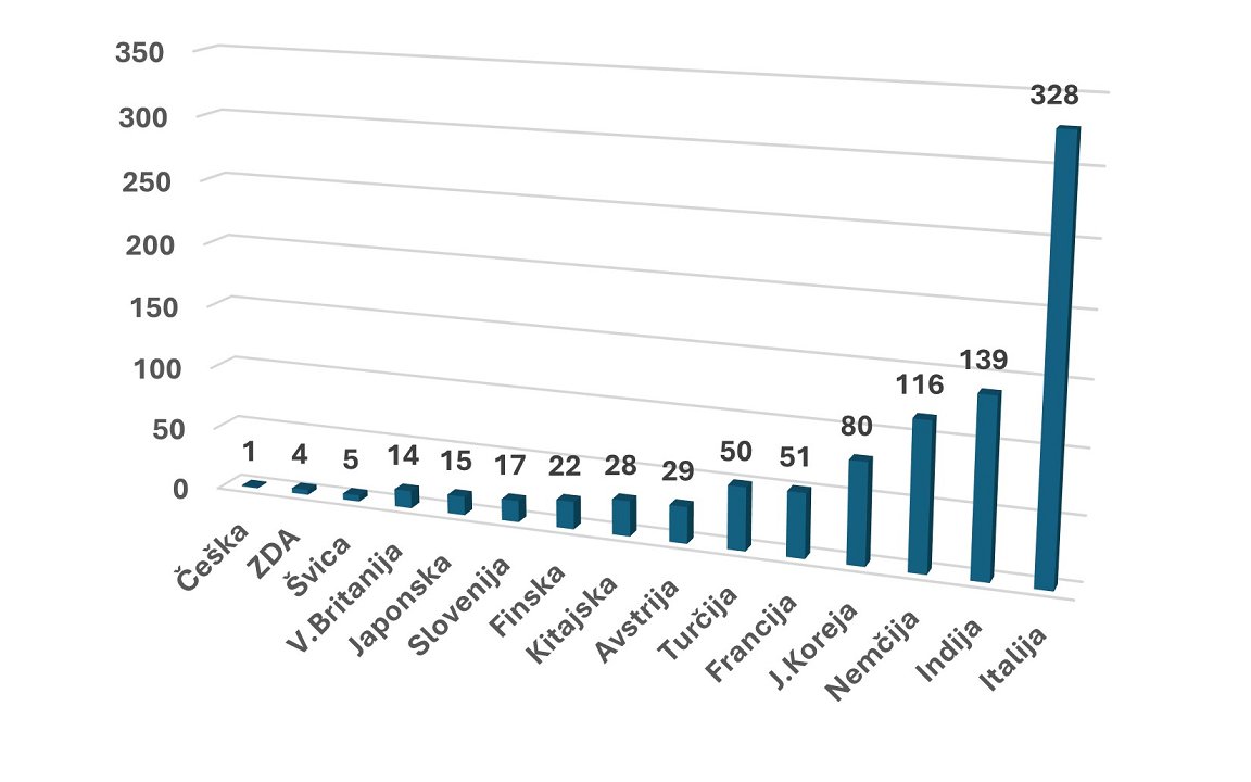 Pripravil smo pregled izvora traktorjev po državah proizvodnje. To pomeni državo, kjer so bili traktorji dejansko proizvedeni in ne kje imajo proizvajalci sedeže. Npr. vsi od 50 traktorjev iz Turčije so bili proizvedeni za proizvajalce s sedežem izven Turčije. Daleč največ lani prodanih traktorjev v Sloveniji je bilo, kot že vrsto let, proizvedenih v Italiji – 328, kar je dobra tretjina, sledita Indija (139), Nemčija (116), Južna Koreja (80), pri 50 pa sta še Francija in Turčija.